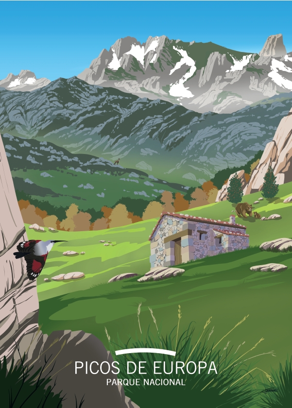 Cartel Ilustrado del Parque Nacional de los Picos de Europa