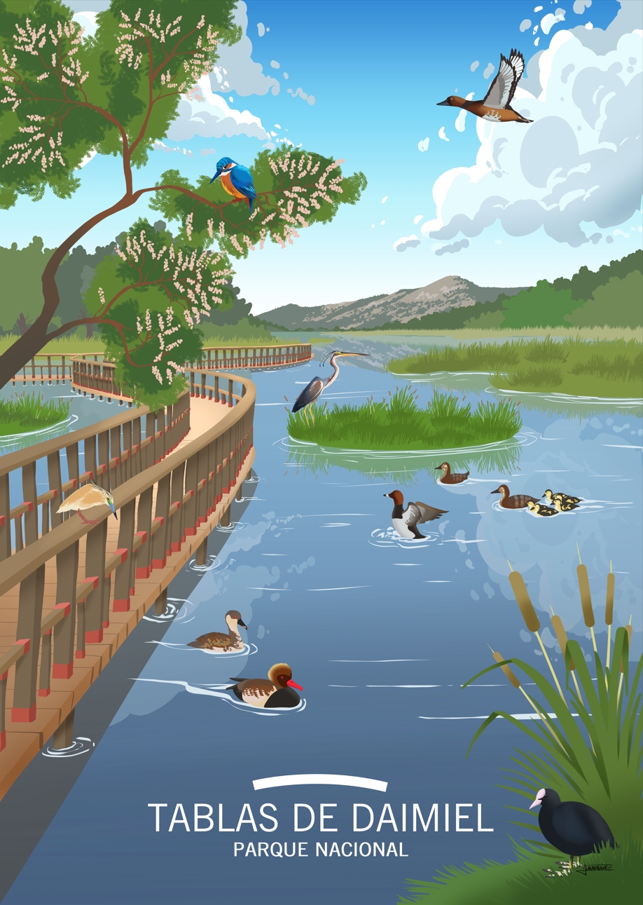 Cartel Ilustrado del Parque Nacional de las Tablas de Daimiel
